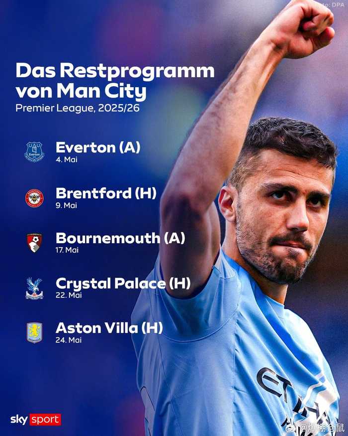 【曼城和阿森纳同分,最后5轮两队的对手如图,你看好哪队夺冠?】